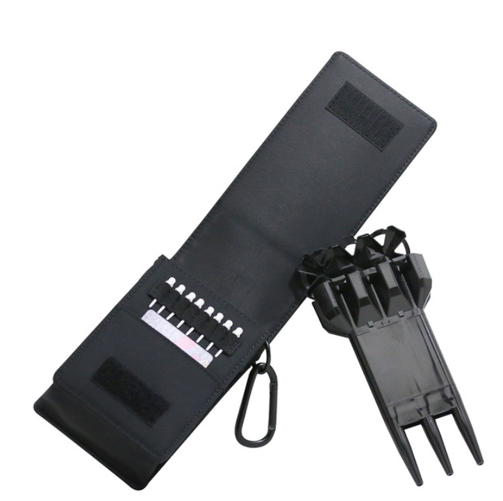 The Cosmo Fit Container Case will safely hold one set of darts in the included molded plastic Case-S drop sleeve protecting your flights from damage. The inside of the case also features storage for up to 8 extra soft tip points or extra shafts. It has a velcro closure and includes an alloy carabiner to attach to your belt loop or purse to keep your darts easily accessible. Extra room inside with the drop sleeve for other accessories as well.